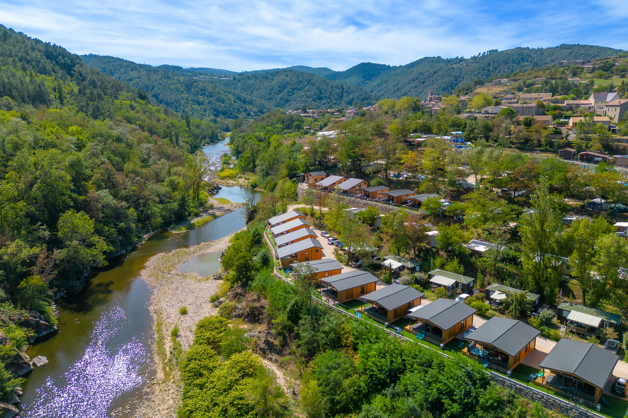 Situé à l’Ollières-sur-Eyrieux en plein cœur de l’Ardèche, nous vous offrons un séjour tout confort en chalets et mobil homes pouvant accueillir 5 à 8 personnes, avec toutes les commodités pour des vacances mémorables. Notre camping offre un parc aquatique comprenant 2 piscines chauffées, un splashpark, 7 toboggans et des bains à remous. Découvrez la richesse historique de l’Ardèche, avec des sites comme Chalencon, Beauchastel, la Grotte de Soyons, Privas et le Château de la Voulte sur Rhône. Profitez également de nombreuses activités sportives telles que le canoë-kayak dans les Gorges de l’Ardèche, cyclisme ou marche sur la Dolce Via, un parcours de 45km. La pêche est aussi possible directement depuis le camping !