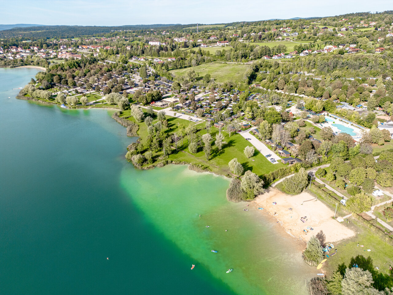 Notre camping, entouré par un magnifique lac, est le cadre parfait pour profiter de la nature et se relaxer. Entre nos 3 piscines chauffées et le lac, l'amusement est garanti! Une promenade à pied ou à vélo vous amène directement au village de Clairvaux, animé et gourmand. Profitez d'une balade en pédalo, d'une paisible session de pêche ou partagez en famille les trésors du Jura : les Cascades du Hérisson, Baume-les-Messieurs, Château-Chalon et la Maison de la Vache qui rit. Les amateurs de nature adoreront les randonnées du Belvédère des 4 Lacs et les panoramas du Pic de l’Aigle. Ajoutez à votre liste d’aventures : Via Ferrata du Regardoir, activités nautiques au lac de Vouglans, escalade ou canyoning. Ne manquez pas les spécialités locales : Comté, Morbier et vin jaune.